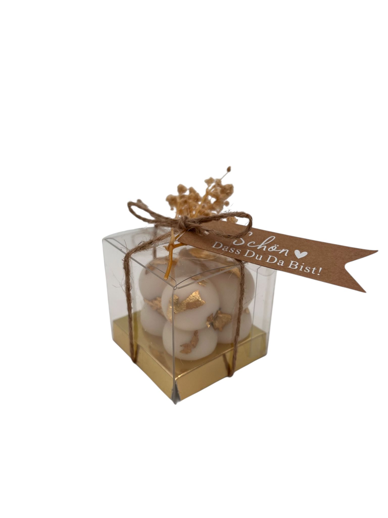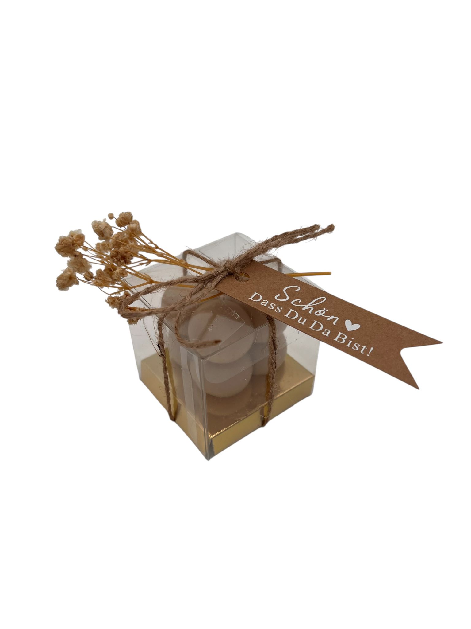 Alle Stücke für besondere Anlässe auf dieser Seite sind liebevoll handgemachte Unikate, die den Moment unvergesslich machen. Jedes einzelne Werk fertige ich ganz individuell für dich an – du bestimmst den Duft aus meiner Duftliste sowie die Farben deiner Lieblingskombination. So entsteht dein ganz persönliches Unikat, das genau zu deinem besonderen Anlass passt!